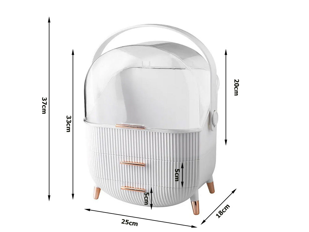 Kosmetikos organizatoriusyra nepakeičiamas įtaisas, kuris ne tik estetiškai atrodo, bet ir užtikrina aukščiausio lygio funkcionalumą , padėdamas palaikyti tvarką jūsų kosmetikos kolekcijoje. Organizatorius sukurtas taip, kad jūsų kosmetika būtų visiškai organizuota . Jame yra du dideli stalčiai ir vienas didelis skyrius aukštiems buteliukams ir pakuotėms. Organizatorius pagamintas iš aukštos kokybės plastiko. Dėltvirtos rankenos jį lengva perkelti į bet kurią vietą. Estetiškai pagaminta kosmetinė tiks prie bet kokio interjero. ✅ Produkto kodas: ✅: 27168 ✅ Pagaminta iš plastiko ✅ 2 stalčiai ✅ 1 didelis atidaromas skyrius ✅ Estetiškas dizainas ✅ Elegantiškas dizainas ✅ Aukso spalvos rankenos ir kojelės ✅ Spalva: balta - ecru ✅ Bendras aukštis su koteliu: 37 cm ✅ Talpyklos aukštis: 37 cm: Aukštis: 33 cm ✅ Plotis: 25 cm ✅ Gylis: 18 cm ✅ Stalčių aukštis: Aukštis: 5cm ☑️ Gamyklinis naujas, didelis kosmetikos organizatorius ☑️ Originali pakuotė
