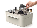 Pasinerkite į grožio pasaulį su Kosmetikos organizatoriumi su stalčiumi ir veidrodėliu! Šis didelis organizatorius ne tik išlaiko jūsų kosmetiką tvarkingą, bet ir suteikia jums galimybę patogiai pasiekti viską, ko reikia jūsų kasdieniam grožio ritualui.