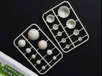 - Plastikinius elementus, kurių skersmuo svyruoja nuo 1,2 cm iki 3,6 cm.