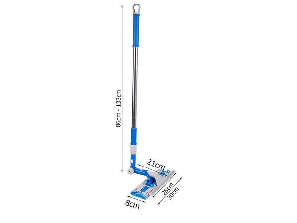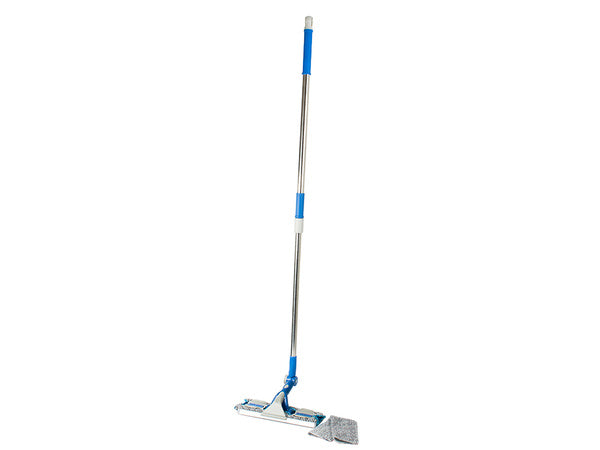 Su mūsų teleskopine rankena, kuri gali būti prailginta nuo 86 cm iki 133 cm, pasieksite net sunkiai prieinamus kampus. Mikropluošto šluostė efektyviai sugeria vandenį, o jos reguliuojama pasukama galvutė leidžia patogiai valyti bet kuriuo kampu.