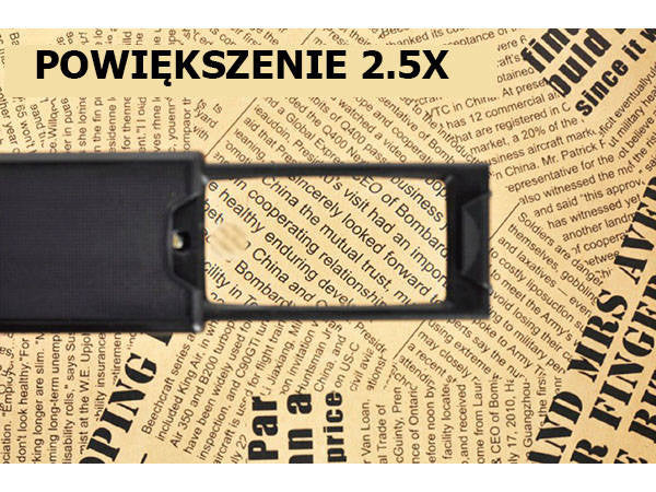 - Palielinamojo stiklo 2,5x dydis: 60 mm x 32 mm