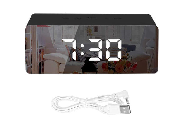 Patirkite naują komforto lygį su LED žadintuvu, laikmačiu ir veidrodžiu 4in1! Šis daugiafunkcinis LCD laikrodis ne tik rodo laiką, bet ir turi datos, temperatūros, snaudimo ir žadintuvo funkcijas. Su baltais šviesos diodais, ekranas yra aiškiai matomas bet kuriuo paros metu ir maloniai apšviestas.