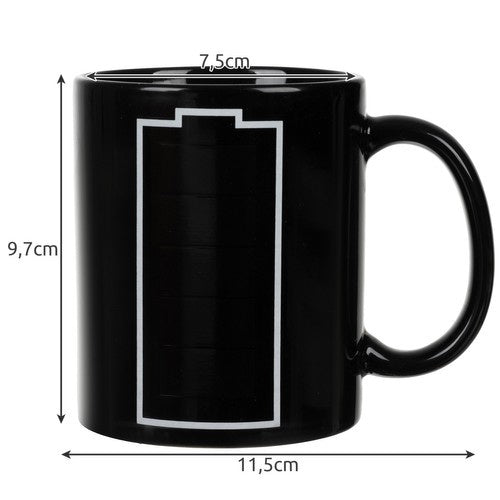 - ŠIAI VYKSTA MAGIJA - aukštos kokybės keraminis puodelis turi magiškų savybių. Jo magija atsiranda, kai užpilate verdančiu vandeniu. Ant puodelio matomas baterijos kontūras pradeda krautis prieš akis . Palaipsniui, žiūrint iš apačios, kiekvienas išraižytas akumuliatoriaus segmentas tampa žalias, parodydamas visiškai įkrautą akumuliatorių. Magiškas puodelis leis visada žinoti, kiek energijos liko.