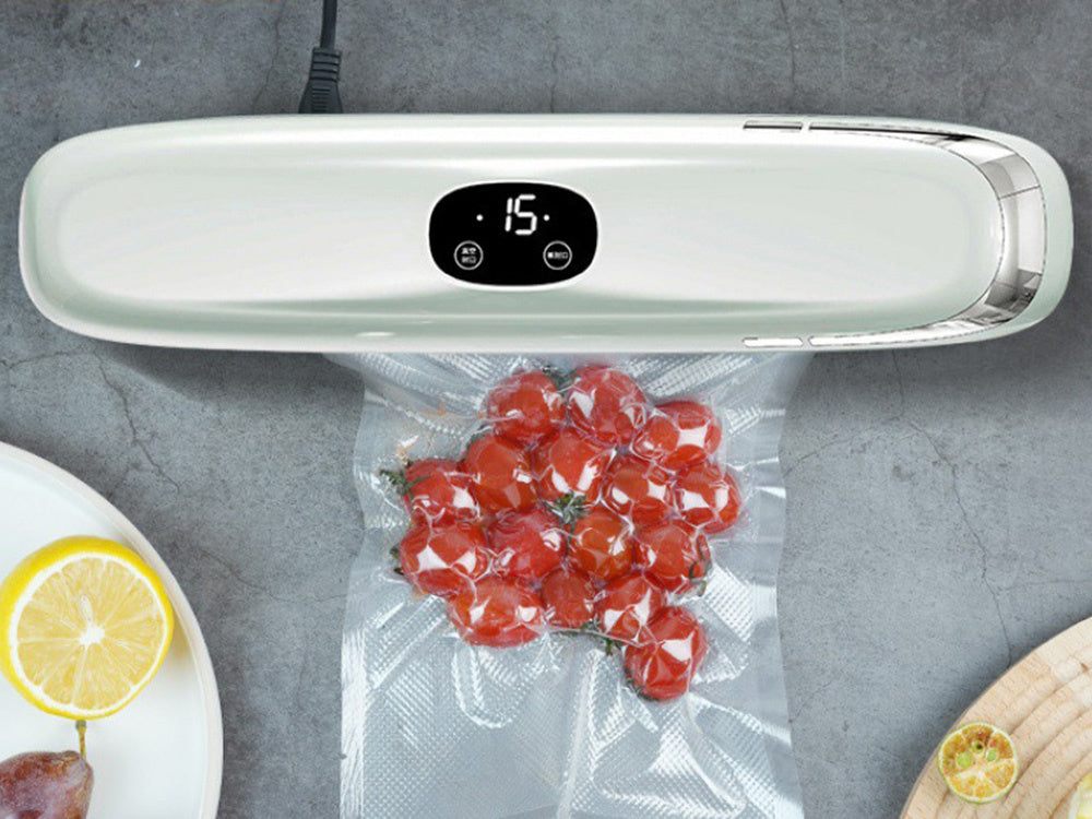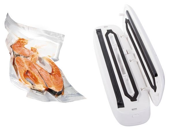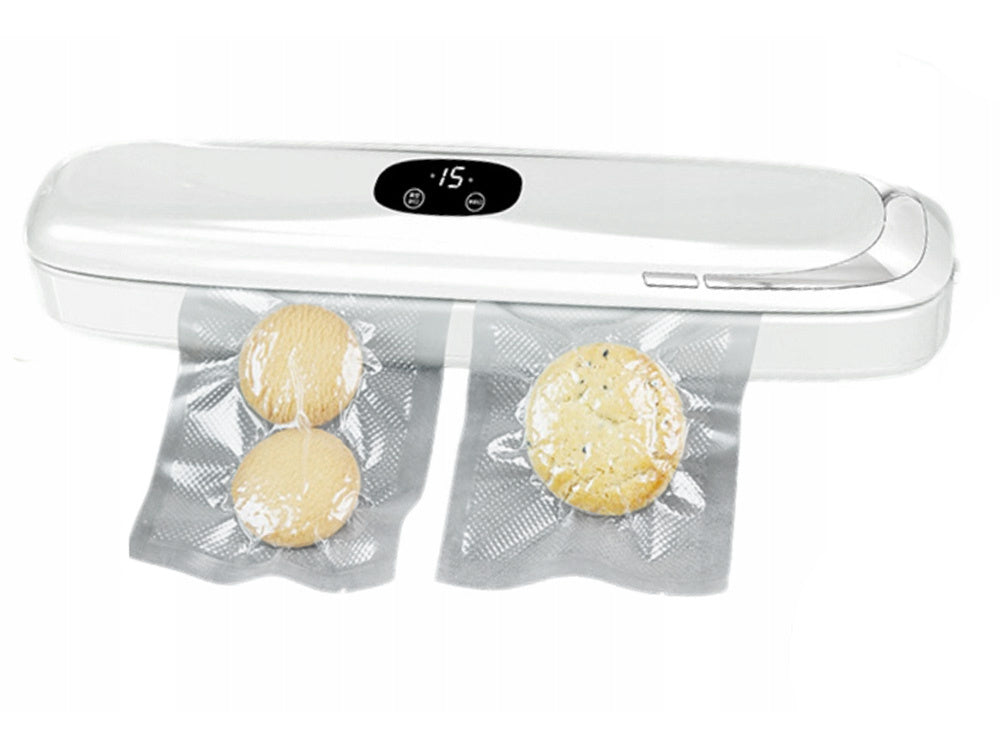 Šis vakuuminis sandariklis yra labai paprastas naudoti. Jis veiksmingai pašalina orą iš maišelio ir užtikrina hermetišką sandarinimą, taip prailgindamas maisto galiojimo laiką.