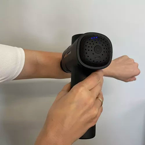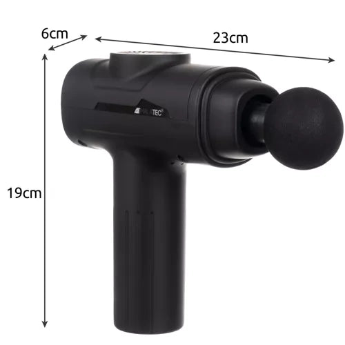 - 6 MASAŽO INTENSYVUMO LYGMENYS - vibruojantis pistoletas turi 6 masažo intensyvumo laipsnius! Tai yra didelis diapazonas, leidžiantis individualiai reguliuoti greitį prie raumenų, kuriems jis bus naudojamas . Intensyvumas matomas LED darbo indikatoriuje ir keičiamas jautriu mygtuku. Tiesiog palieskite jį švelniai – jums nereikės priverstinai keisti režimo.