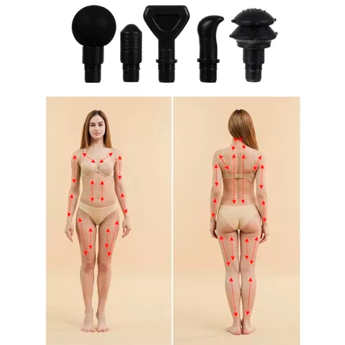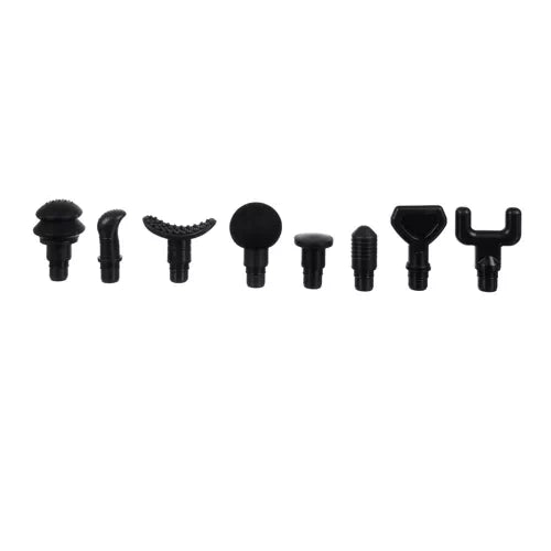 - 8 KEIČIAMI GALAI MASAŽAI - kiekviena raumenų grupė reikalauja atitinkamų dirgiklių, o 8 skirtingų antgalių dėka galima dirbti su daugybe raumenų, net ir sunkiai pasiekiamų. Rinkinyje yra tokie antgaliai kaip: apvalūs, plokšti, kulka ir šakutė – išsamų aprašymą, kur juos panaudoti, rasite žemiau esančiame aprašyme. Pistoletas pagamintas iš aukščiausios kokybės medžiagų, puikiai telpa rankoje, vieta kur jį laikome padengta neslystančia konstrukcija, neleidžiančia paslysti procedūros metu. iš delno.