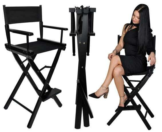 - STABILI KONSTRUKCIJA - gaminys pagamintas iš aukštos kokybės buko medienos ir vandeniui atsparių Oxford 600D medžiagų. Jis turi tvirtą rėmą, užtikrinantį patogumą ir saugumą naudojimo metu. Puikiai tinka profesionaliems grožio salonams, foto ir filmų rinkiniams, makiažo studijoms įrengti. Kėdė aprūpinta pėdų atrama, kuri ženkliai pagerina sėdėjimo komfortą taikant makiažą/apibūdinimą.