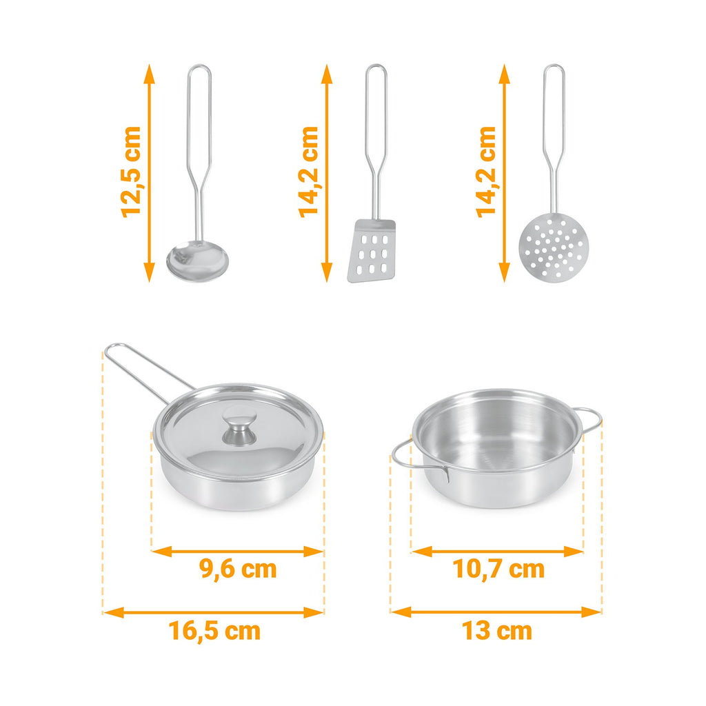 - Priedai: į komplektą įeina 6 virtuvės įrankiai, 3 maisto produktai