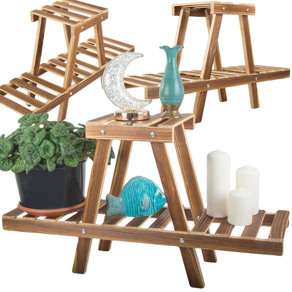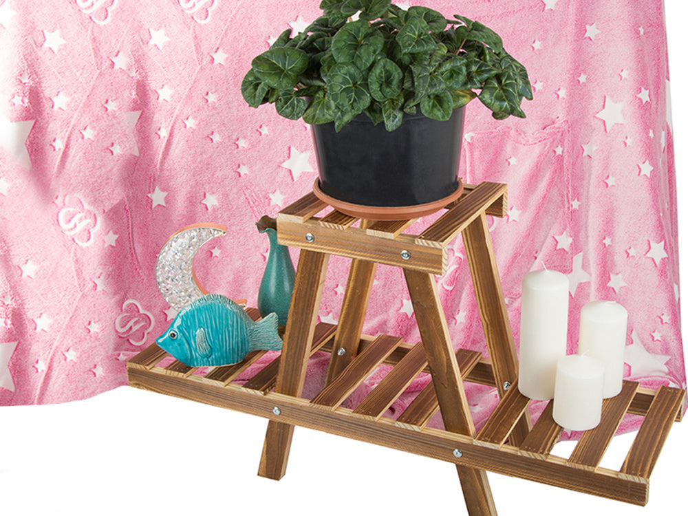 Šis medinis gėlių vazonų stovas dviejų aukštų lentyna yra puikus pasirinkimas tiems, kurie vertina ekologiškas medžiagas ir gražius sprendimus savo erdvėje. Nepamirškite, kad jis taip pat gali būti puiki dovana gėlių mylėtojams!