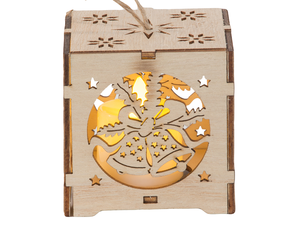 Pasinerkite į kalėdinę magiją su mediniu kabantu žibintu, kuris puikiai papuoš jūsų kalėdų eglutę ir suteiks šilumos jūsų namams. Šis unikalus žibintas su integruotu LED apšvietimu yra ne tik dekoracija, bet ir maloni šviesos šaltinis, kuris džiugins visus jūsų artimuosius.