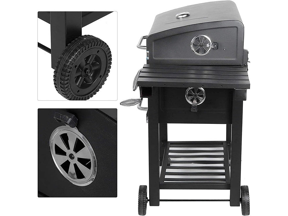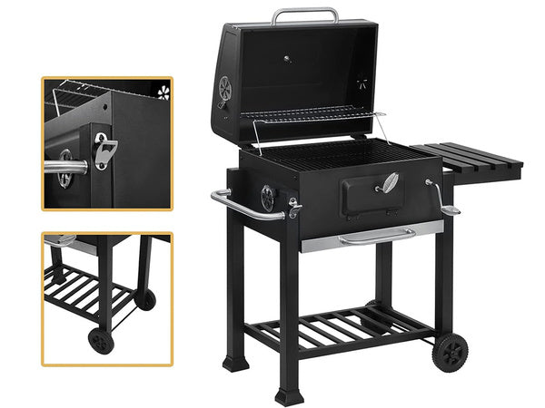 Ar svajojate apie tobulai iškeptą kiaulienos sprandinę? Mūsų užrakinama kepsninė su termometru yra ne tik kepsninės prietaisas - tai tikra mašina nepamirštamiems skoniams ir akimirkoms su artimaisiais kurti. Pasinerkite į aromatingo maisto, tobulos temperatūros kontrolės ir tikslaus gaminimo pasaulį - visa tai dėl mūsų patikimo grilio, kuris iš esmės pakeis jūsų susitikimus gaminant maistą lauke! Uždaromos grotelės užtikrina puikią temperatūros kontrolę ir išsaugo aromatingą maisto skonį. Dėl reguliuojamos ventiliacijos galite lengvai reguliuoti temperatūrą pagal savo poreikius ir užtikrinti idealias kepimo sąlygas. Integruotas termometras leidžia stebėti temperatūrą kepsninės viduje ir užtikrina idealias sąlygas mėsai kepti pagal jūsų pageidavimus. Taip galėsite būti tikri, kad maistas visada bus idealiai iškeptas. Dėl didelio kepimo paviršiaus mūsų užrakinamoje kepsninėje vienu metu galima kepti kelis patiekalus, todėl ji puikiai tinka šeimos susibūrimams ir vakarėliams lauke. Daugiau nebereikės laukti kitos kepimo ant grotelių partijos - dabar galėsite mėgautis mėgstamų patiekalų skoniu, kai tik panorėsite! ✅ Produkto kodas: 27089 ✅ Aukštos kokybės konstrukcija ✅ Daugkartinio naudojimo ✅ S stalo konstrukcija ✅ Didelis paviršiaus plotas ✅ Dviejų lygių ✅ Peleninė ✅ Butelių atidarytuvas ✅ 4 reguliuojamos oro įleidimo angos ✅ Ratukaipervežimui ✅ S ide lentyna ✅ Krintantis pelenų stalčius ✅ Durelės anglims pridėti ✅ Rankena atstumui iki anglių reguliuoti ✅ grotelių matmenys: 56 cm x 41 cm ✅ Laikymo grotelių matmenys: 55m x 25cm