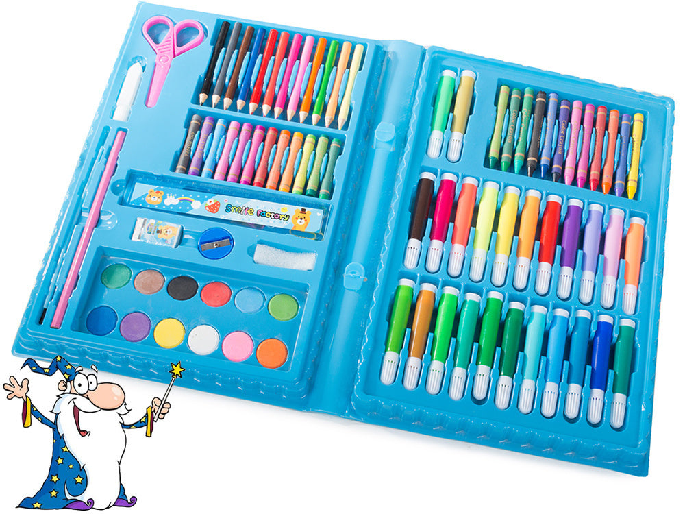 Visas rinkinys įdėtas į plastikinį dėklą, todėl visą rinkinį paprasta ir patogu gabenti . Be to, jis turi rankeną, kad būtų patogu nešiotis. Kadangi visi piešimui reikalingi reikmenys yra vienoje vietoje , jums ir jūsų mažyliui nebereikės ieškoti mėgstamos kreidelės ar reikiamos spalvos dažų. Piešimas ir tapyba yra itin kūrybinga veikla, lavinanti vaizduotę, tačiau norint įgyvendinti savo idėjas ir perkelti jas ant popieriaus, reikia tinkamų piešimo priemonių. Rinkinį sudaro net 86 elementai. ✅ 12 pieštukų su žvakėmis ✅ 12 x pieštukinės kreidelės
