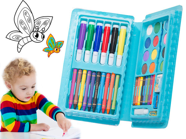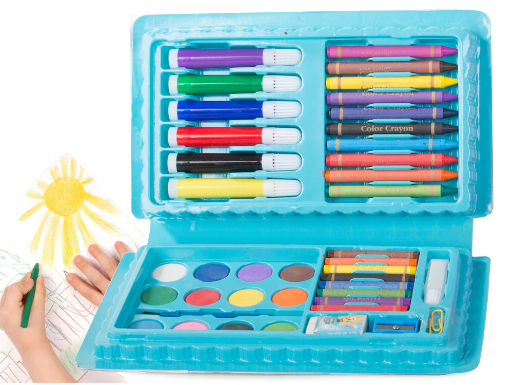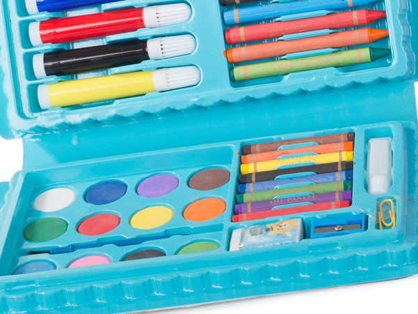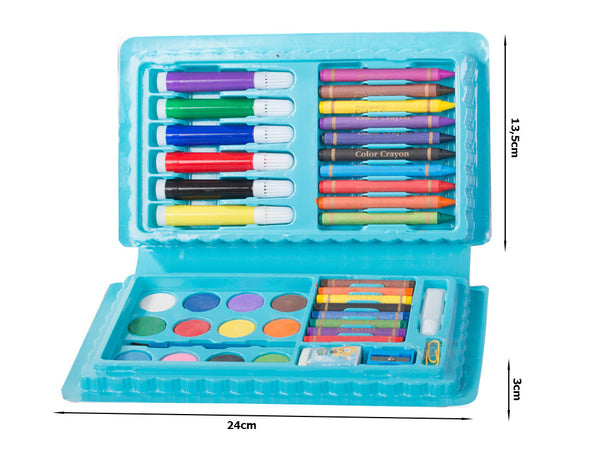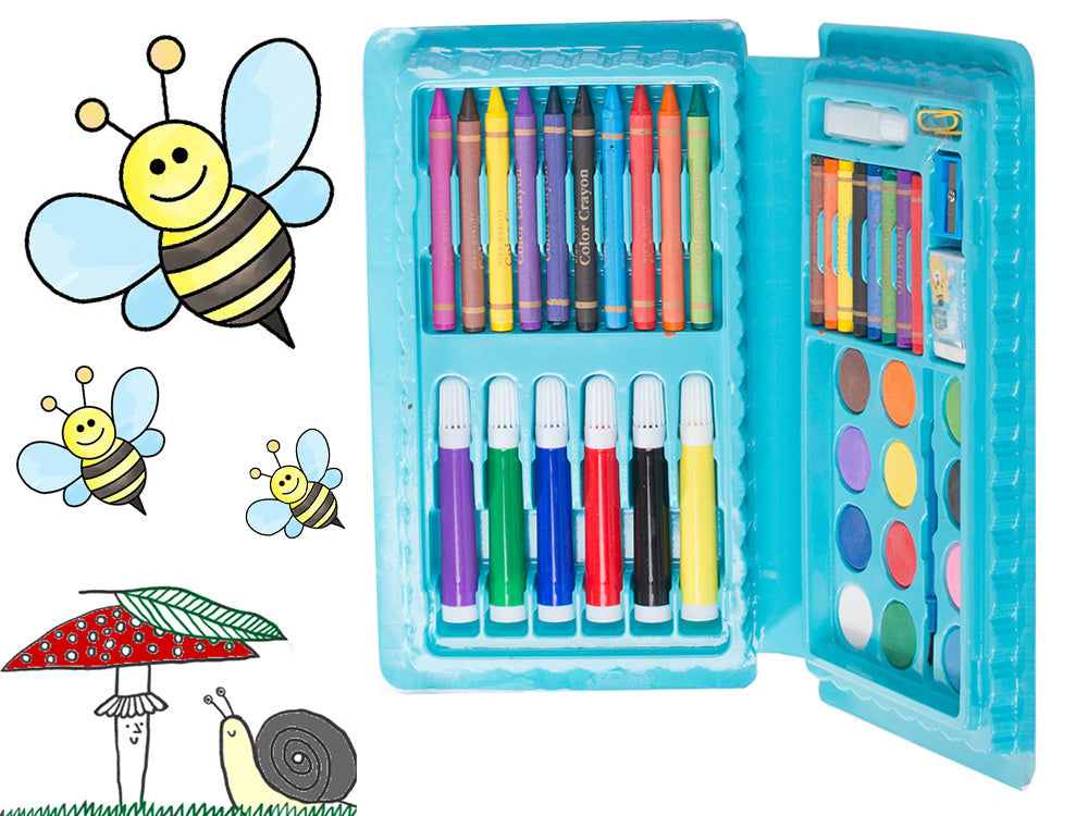 Visi reikmenys yra patogiai supakuoti sandariai uždaroje dėžutėje, todėl juos lengva gabenti ir laikyti. Nebereikės ieškoti mėgstamos kreidelės ar dažų – viskas, ko reikia, yra vienoje vietoje!