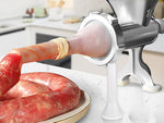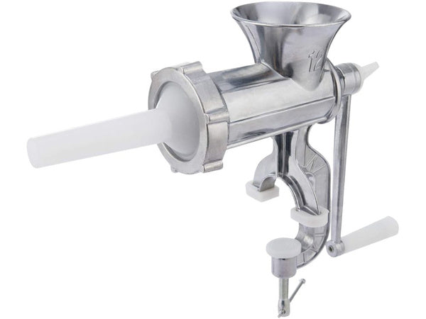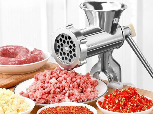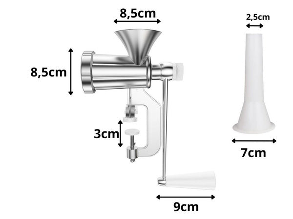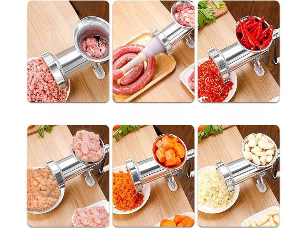 Aliumininė alkūninė mėsmalė yra tradicinis, tvirtas prietaisas, idealiai tinkantis naudoti namuose. Pagamintas iš patvaraus aliuminio, jis atsparus korozijai ir lengvai valomas. Rankinis alkūninis mechanizmas leidžia tiksliai sumalti mėsą, kontroliuojant mėsos konsistenciją. Be to, skustuve yra specialus dešrų antgalis, todėl galėsite patys gaminti naminius mėsos gaminius, pavyzdžiui, dešreles ar paštetus. Tai funkcionalus ir patikimas įrankis, idealiai tinkantis tradicinių maisto ruošimo būdų mėgėjams ir naminių konservų gamintojams. ✅ Produkto kodas: 07311 ✅ Medžiaga: aliuminis ✅ Patogi alkūninė rankena ✅ Lengvai valomas ✅ Lengvas ✅ Tvirtas dizainas ✅ Spalva: sidabrinė ☑️ Nauja gamyklinė mėsmalė ☑️ Rankena su tvirtinimo įtaisų rinkiniu ☑️ Dešrų gaminimo antgalis ☑️ Originali pakuotėMĖSOS MALIMO MAŠINOS VADOVAS DEŠRŲ KIMŠIMO MAŠINOS VADOVAS