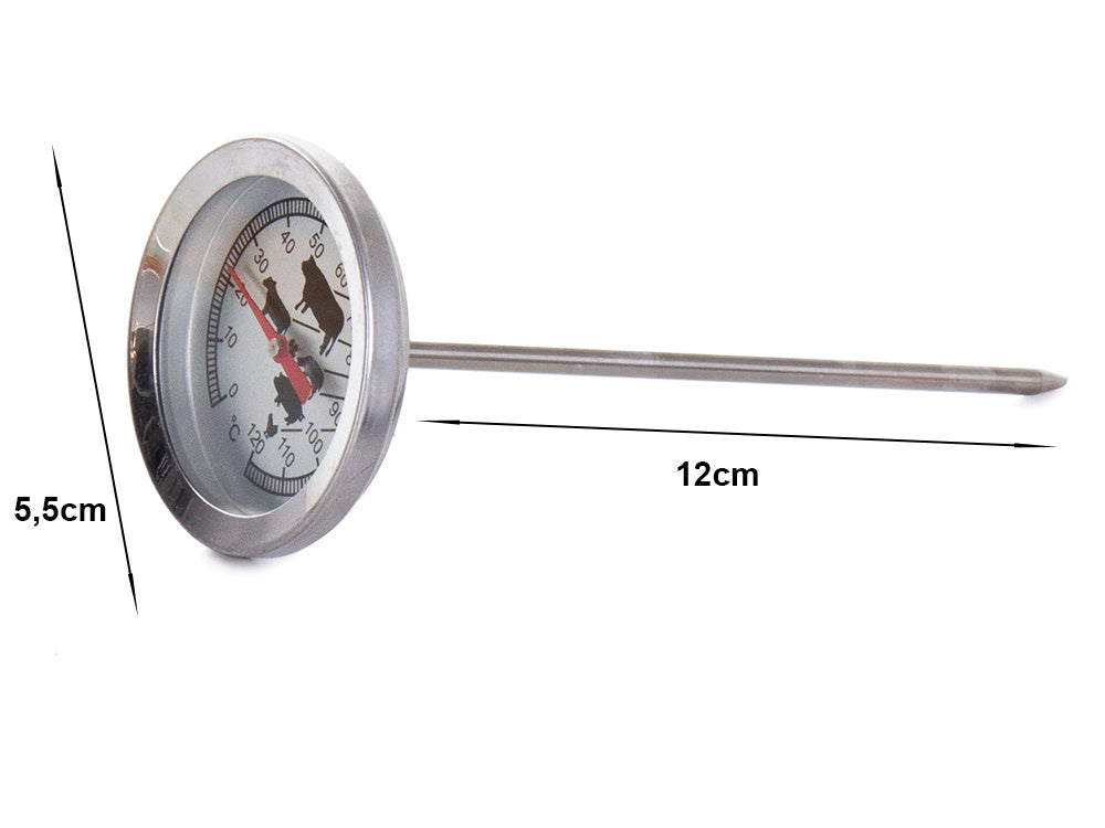 - Platus matavimo diapazonas: 0-120 laipsnių Celsijaus, idealiai tinka įvairiems mėsos patiekalams.
