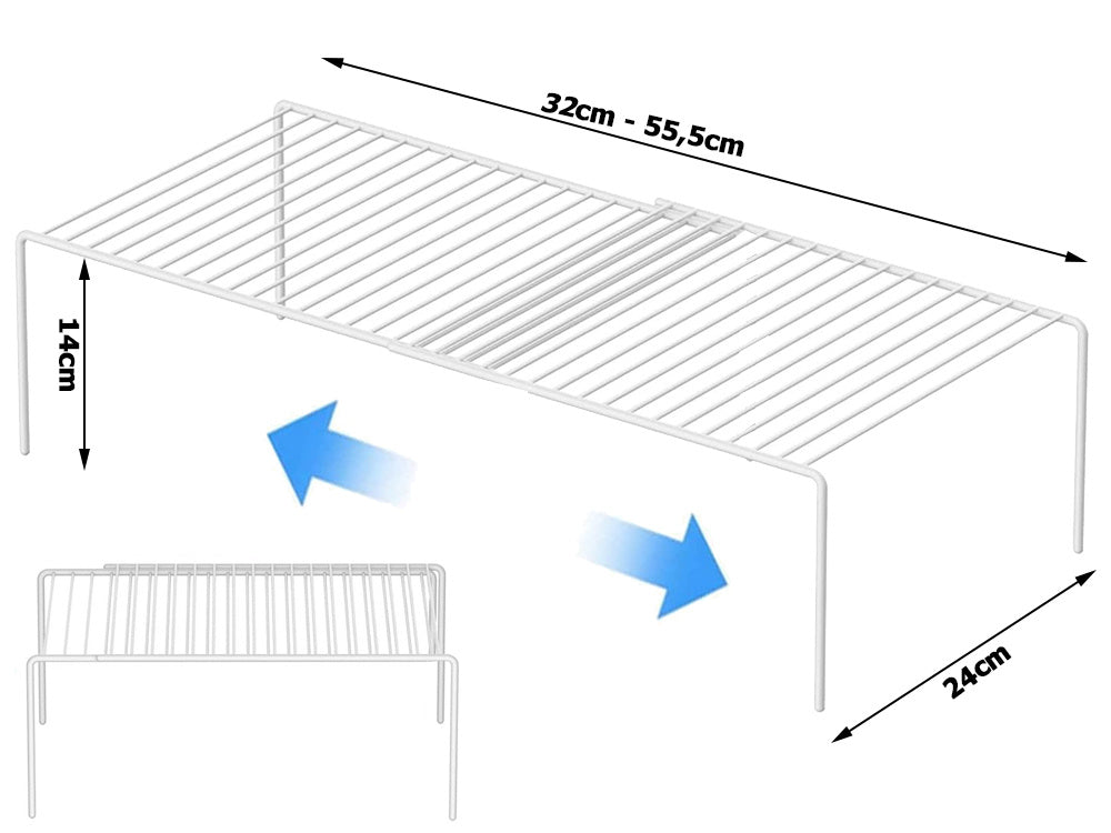 Reguliuojamas plotis: Lentynos plotis gali būti reguliuojamas nuo 32 cm iki 55,5 cm, todėl ją lengva pritaikyti jūsų erdvės poreikiams.