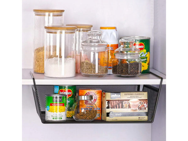 Patirkite efektyvų organizavimą su metaliniu krepšeliu pakabinama virtuvės lentyna. Šis juodas pakabinamas organizatorius yra idealus sprendimas, padedantis maksimaliai išnaudoti jūsų erdvę, neatsižvelgiant į tai, ar jis naudojamas virtuvėje, vonios kambaryje, biure ar drabužinėje.