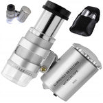 Pasinerkite į detalių pasaulį su Mikroskopu 60x 2 LED profesionalus lumpa juvelyrams. Šis kompaktiškas kišeninis mikroskopas, turintis 60 kartų didinimą ir dvi LED lemputes, leidžia jums pamatyti net mažiausius įbrėžimus ar pirštų atspaudus, kuriuos sunku pastebėti plika akimi.