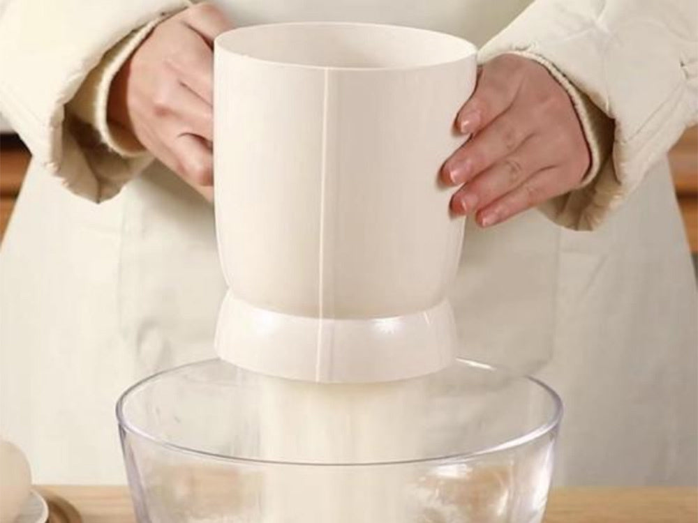 - Elektrinis veikimas: Sietelis su elektriniu mechanizmu užtikrina greitą ir efektyvų miltų, cukraus pudros ar kitų birias sudedamųjų dalių sijojimą, pašalinant gumulėlius.