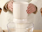 - Talpa: Didelė talpa (apie 3 puodeliai) leidžia sijoti daugiau ingredientų vienu metu, kas ypač naudinga, jei dažnai kepate.