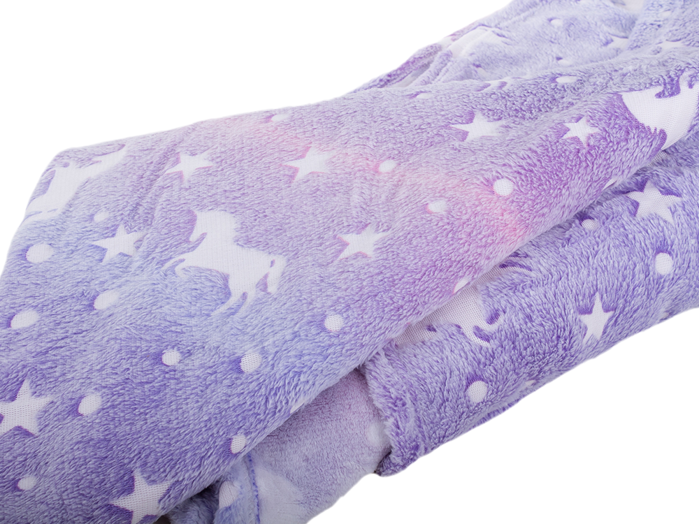 Pasinerkite į šilumą ir jaukumą su mūsų minkšta antklode lovatiese šviečianti 150x180. Ši antklodė, kurios matmenys yra 150 cm x 180 cm, yra ideali kompanionė ilgoms rudens vakarams prie židinio. Jos itin maloni ir švelni tekstūra leis jums jaustis ypatingai, o švelnios violetinės spalvos su poniais ir žvaigždutėmis puikiai tiks bet kokiam miegamajam interjerui.