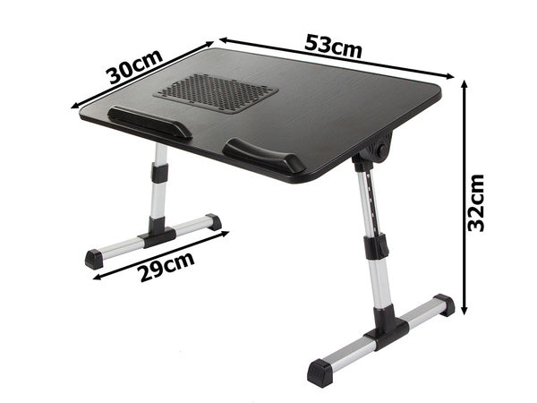 Šis nešiojamojo kompiuterio stalas sulankstomas stalas aušinimo padas ventiliatorius puikiai tinka tiek namuose, tiek biure, tiek kelionėse. Pasinaudokite šiuo moderniu sprendimu ir patobulinkite savo darbo patirtį!