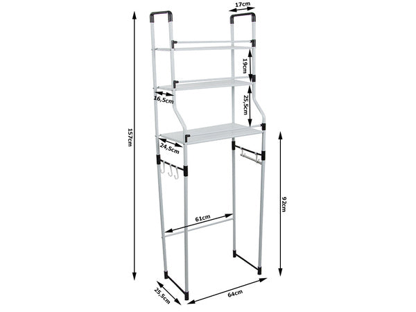 Funkcionali 3 lygių lentyna skirta naudoti virš skalbimo mašinos ar tualeto. Idealiai tinka mažoms erdvėms vonios kambaryje – padeda išnaudoti vertikalią erdvę laikymui.