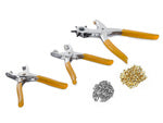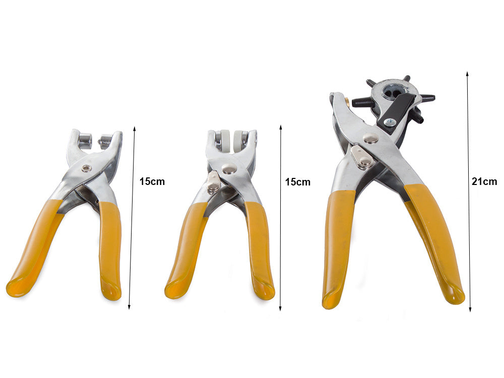Odos įrankių rinkinys - tai įrankių rinkinys, su kuriuo lengvai įdėsite užtrauktukus, užsegsite kniedes ir padarysite skyles diržuose, batuose ir pan. Rinkinį sudaro trys odos apdirbimo įrankiai ir įtempiamųjų smeigtukų bei kniedžių rinkinys. Revolverio replės - tai rotacinis įrankis, skirtas įvairių dydžių skylėms daryti: 2 mm, 2,5 mm, 3 mm, 3,5 mm, 4 mm, 4,5 mm. Šiuo įrankiu lengvai padarysite skyles odoje, tekstilėje, plastike, kartone ir t. t. Kniedžių replės - skirtos kniedėms į iki 4,5 mm skersmens skyles įstatyti ir užspausti. Užspaudimo replės - skirtos užspaudimams Rinkinys pagamintas iš tvirto, deformacijoms atsparaus plieno. Rankenos specialiai suformuotos, padengtos neslystančia danga, todėl jas galima tvirtai laikyti rankoje. Kiekvienas iš trijų įrankių turi fiksatorių, užtikrinantį patogų naudojimą. Be to, į rinkinį įeina priedų rinkinys: 100 vnt. kniedžių, 100 vnt. įtempimo ✅ Produkto kodas: ✅: 11257 ✅ Medžiaga: plienas ✅ Kontūruotos rankenos ✅ Kniedijimo replės ✅ Revolverinės replės skylėms ✅ Įtempimo replės ✅ Kniedžių ir įtempimo rinkinys ✅ Paprastas valdymas ✅ Rankenos užraktas ✅ Spalva: sidabriškai geltona ☑️ Naujas gamyklinis kaltelių rinkinysODOS ĮRANKIŲ RINKINYS ODOS TVIRTINIMO DETALĖS KNIEDĖS