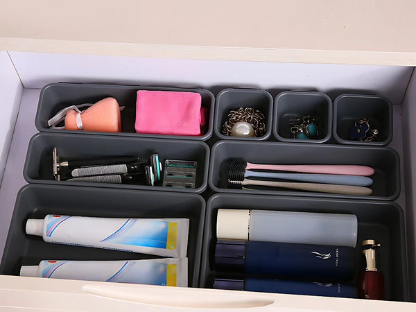 Organizatorių rinkinys 8 vnt. Smulkmenų dėklų plastikinių stalčių dėžučių yra puikus sprendimas, kai norite tvarkingai laikyti smulkius daiktus. Šis praktiškas rinkinys padės užtikrinti, kad visi Jūsų reikalingiausi daiktai būtų lengvai pasiekiami ir tvarkingai sudėti.