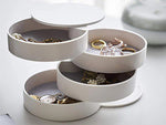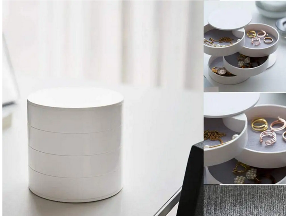 Organizuokite savo smulkmenas su Papuošalų dėžutės organizatoriaus apvalia ištraukiama dėžute, baltos spalvos, sukurtą ne tik papuošalams, bet ir kosmetikai, siuvimo reikmenims ir kitiems mažiems daiktams. Šis stilingas organizatorius yra puikus sprendimas, norint išlaikyti daiktus tvarkingus ir lengvai pasiekiamus.