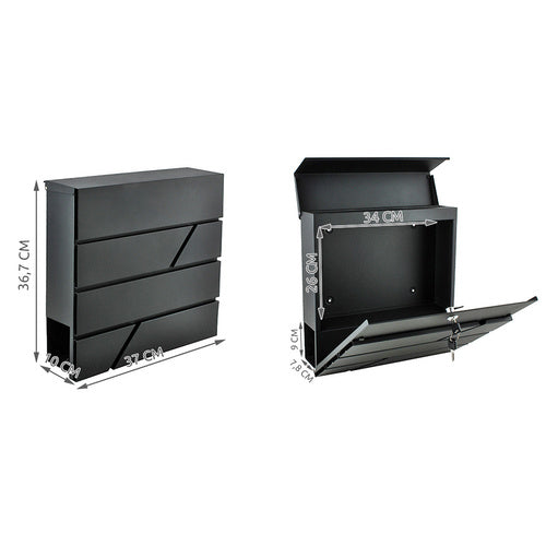PAGAMINTA IŠ BERUDIJO CINKO GELEŽIS - dėžutė pagaminta iš cinkuotos geležies, todėl nerūdys ir tarnaus Jums daugybę sezonų. Komplekte yra tvirtinimo kaiščiai ir guminės poveržlės/tarpikliai. Ačiū jiems galite patogiai prisukti dėžę prie tvoros, pvz . Patogumui galinėje sienelėje yra tvirtinimo angos. ĮRAŠAS DIRŽE / A4 FORMATAS – pašto dėžutėje yra įdėklas, kuris užsegamas specialiu dangteliu, apsaugančiu korespondenciją nuo oro sąlygų. Į pašto dėžutę telpa net A4 dydžio raidės. 2 RAKTAI – rinkinyje yra pora raktų, todėl nereikia daryti kitos kopijos, jei dėžutę valdo papildomi žmonės. LAIKRAŠČIAMS IR LANKŠELIAMS VAMZTELIS – dėžutės apačioje yra specialus vamzdelis, kuriame telpa susukti laikraščiai, reklaminiai lankstinukai ar lankstinukai. DĖŽĖS SPECIFIKACIJA: spalva: antracitas medžiaga: cinkuota geležis, aliuminis, EVA, cinko lydinys, ABS formatas: A4 išmatavimai: 10 x 37 x 36,7 cm svoris: 3,5 kg svoris su pakuote: 3,7 kg ĮSKAIČIUOTA pašto dėžutę 2 raktai 4 tvirtinimo kaiščiai ir poveržlės Teisingai įteikta korespondencija reiškia ne tik ramybę, susijusią su pristatymo kokybe, bet ir rūpinimąsi vieta, kur ji bus perduota, kad ją atimtų gavėjas. Pašto dėžutė turi uždengtą angą, kuri apsaugo jos vidų nuo oro sąlygų. Tai ypač svarbu klasikiniams laiškams ir atvirukams, kurie nėra atsparūs vandeniui ir gali būti sugadinti, jei bus paveikti drėgmės. Lengvai pakeliamas sklendė neleidžia vandeniui tekėti dėžute arba lietui, kuris pasiekia viršutinį tarpą tarp durelių ir dėžės, todėl neleidžia vandeniui tekėti į vidų. LAIŠKŲ DĖŽUTĖ - ANTRACITO DIDELIS, A4 DYDŽIO
