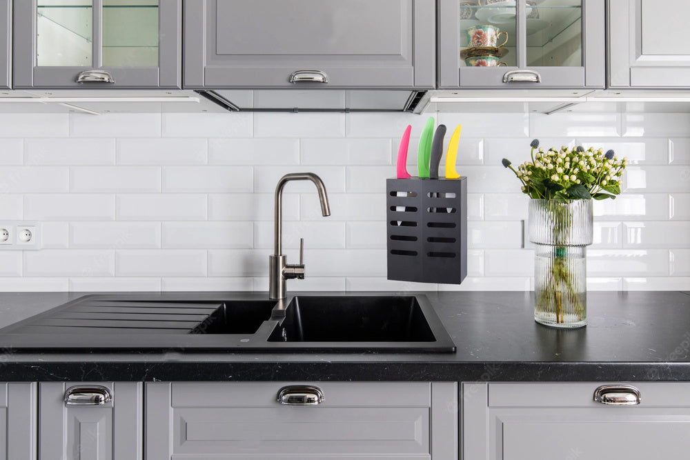 Atraskite Peilių stovą virtuvės organizatorių peilių nusausintuvą, kuris ne tik padės sutvarkyti virtuvėje esančius stalo įrankius, bet ir suteiks modernią išvaizdą bet kuriam interjerui. Šis metalinis virtuvės organizatorius pagamintas iš tvirto milteliniu būdu dengto plieno, todėl yra ilgaamžis ir atsparus dėmėms.