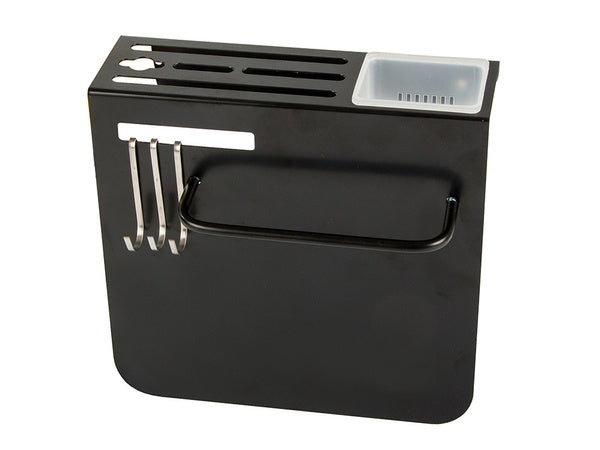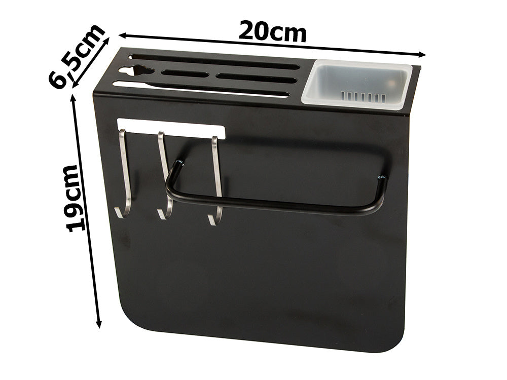 Vienas iš pagrindinių privalumų – kompaktiškas dizainas, kuris leidžia montuoti organizatorių ant sienos ir taupyti vietą ant virtuvės stalviršio. Jį galima pritvirtinti tiek klijais, tiek naudojant rinkinį įtrauktus smeigtukus ir varžtus.