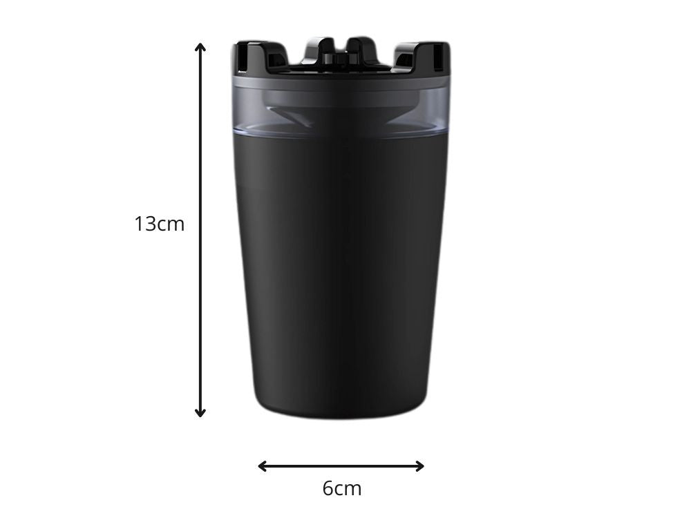 - Kompaktiška forma: Puikiai telpa į automobilio puodelių laikiklius.