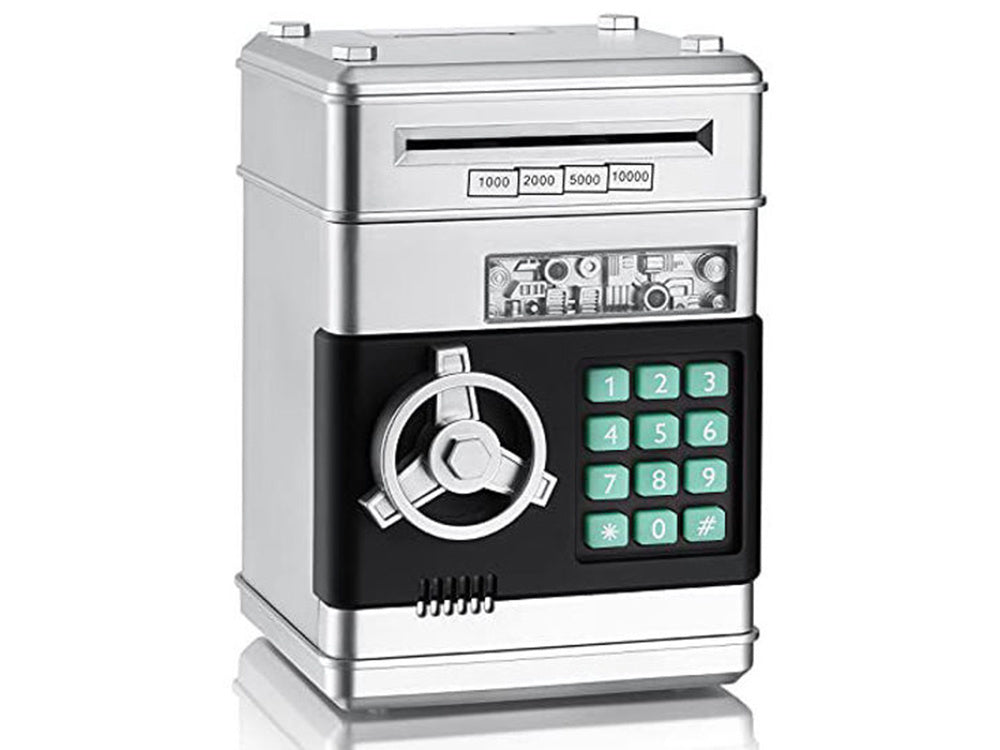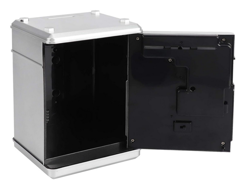 Pinigų dėžutė pagaminta klasikiniu seifo stiliumi, kuris suteikia jai unikalaus žavesio. Pinigų dėžutėje įrengtas pažangus PIN kodu paremtas užrakinimo mechanizmas, todėl prie savo santaupų galėsite prieiti tik jūs. Ši taupyklė yra malonus tradicinių taupyklių pakeitimas, nes ji ne tik puošia lentyną, bet ir yra smagi pramoga mažiesiems. Įveskite numatytąjį slaptažodį 0000 ir atidarykite dureles. ✅ Palaikykite nuspaudę * mygtuką, pradės mirksėti raudonas ir žalias šviesos diodai. ✅ Per 15 sekundžių įveskite naują 4 skaitmenų slaptažodį, paspauskite mygtuką "#", kad išsaugotumėte naują slaptažodį. Abi lemputės nustos mirksėti. ✅ Atleiskite * mygtuką ir uždarykite seifo dureles. ✅ Įdėkite baterijas - 3 x AA ✅ Padėkite banknotą prie angos, jis bus ištrauktas į vidų. ✅ Įkiškite monetą pro mažą skylutę pinigų dėžutės viršuje. ✅ Norėdami išimti pinigus iš seifo, įveskite anksčiau nustatytą 4 skaitmenų PIN kodą. Užsidegs žalias šviesos diodas. Pasukite ratuką pagal laikrodžio rodyklę ir atidarykite seifą. (Žalias šviesos diodas šviečia apie 10 sekundžių, po to seifas užsirakina). ✅ Mygtukais nuo 1 iki 9 pakeiskite melodiją. ✅ Seifo viduje yra jungiklis su garsu / be garso