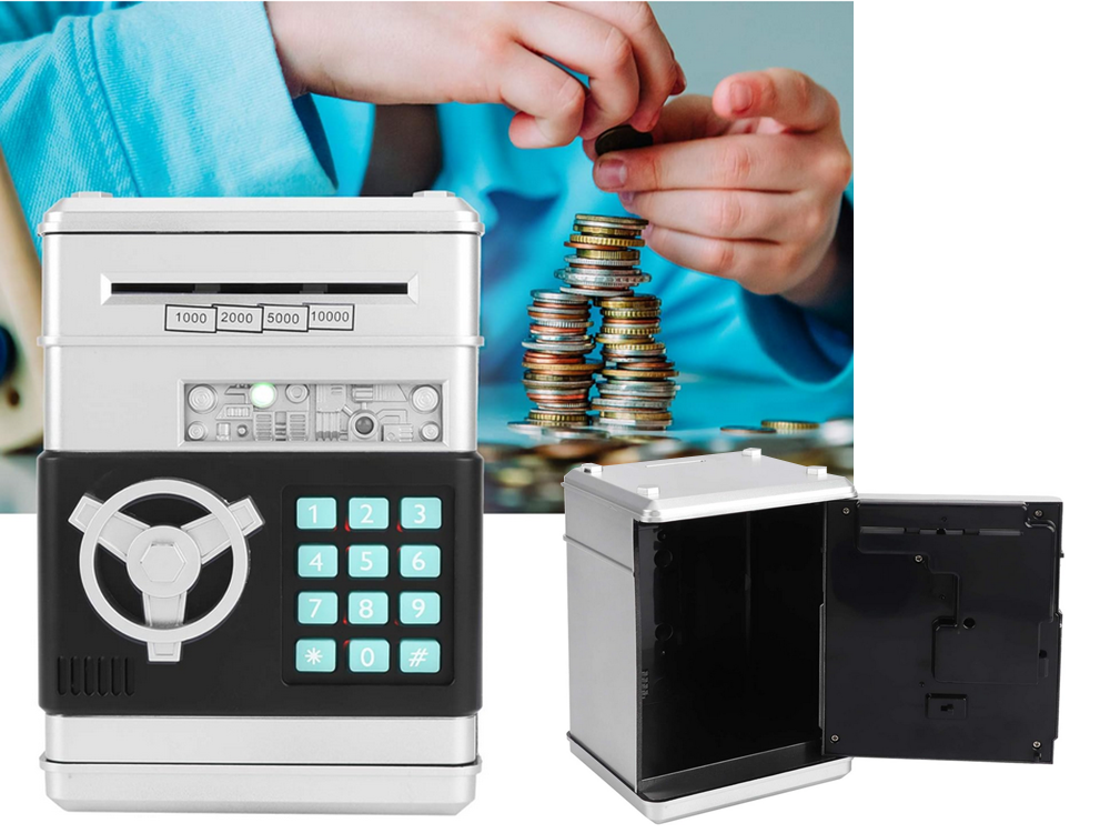 ✅ Mokymasis taupyti pinigus per puikią pramogą ✅ Galimybė išimti santaupas ✅ Pinigų dėžutė su banknotais ir monetomis ✅ Maitinimo šaltinis: 3 x AA ✅ Galimybė išjungti garsą ✅ Spalva: sidabrinė ✅ Pinigų dėžutės plotis: 13,5 cm ✅ Aukštis: 19 cm ✅ Pinigų dėžutės gylis: 12 cm ☑️ Gamyklinis naujas interaktyvus seifas su kiaulėmis ☑️ Originali pakuotėPINIGŲ DĖŽUTĖS SEIFAS, SKIRTAS PRIEIGOS KODŲ BANKNOTAMS
