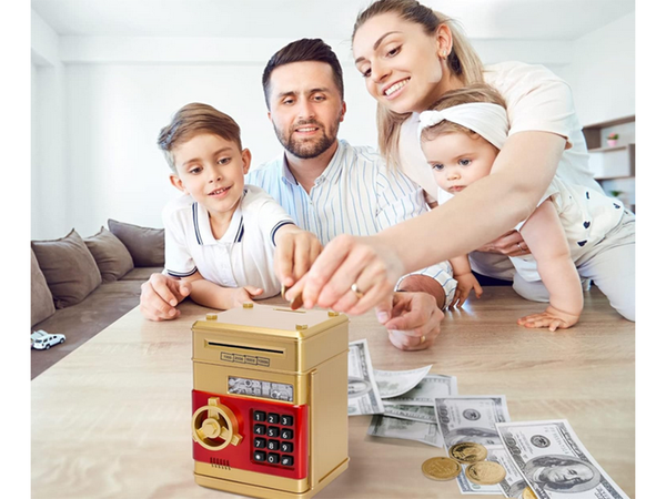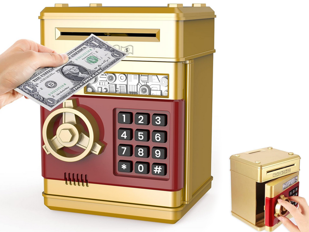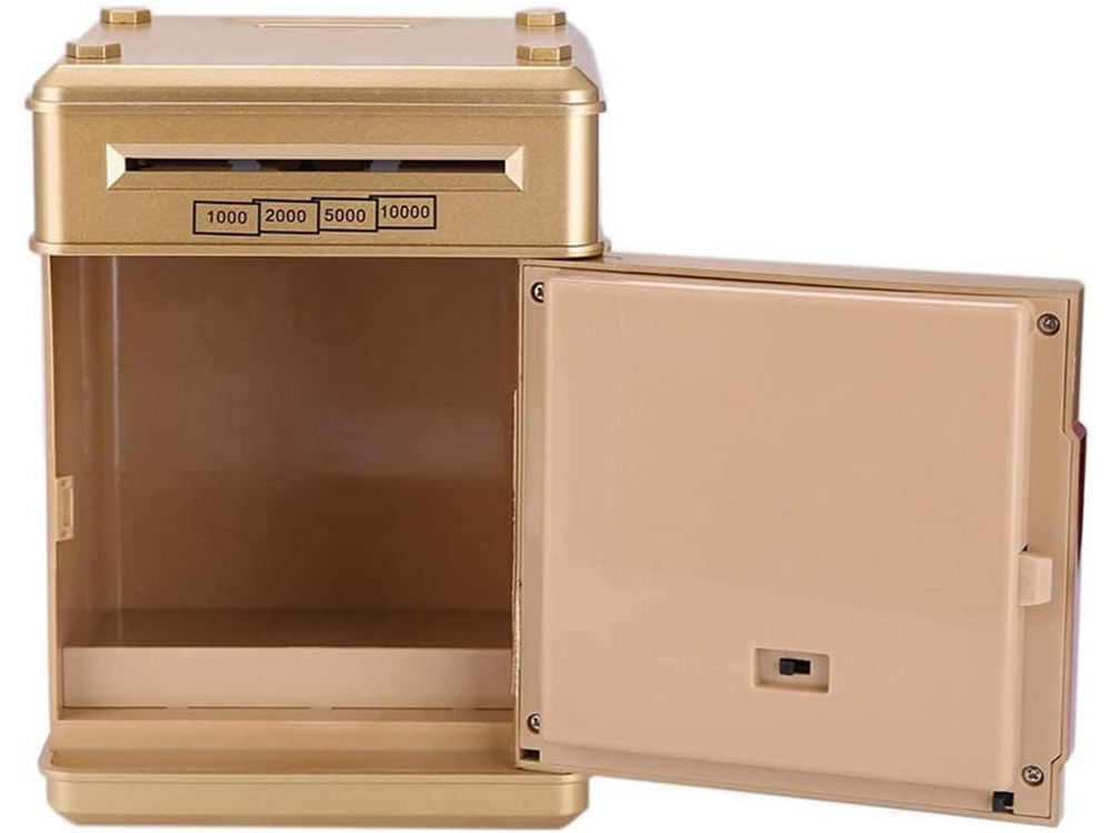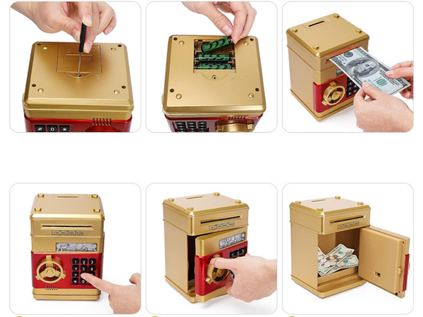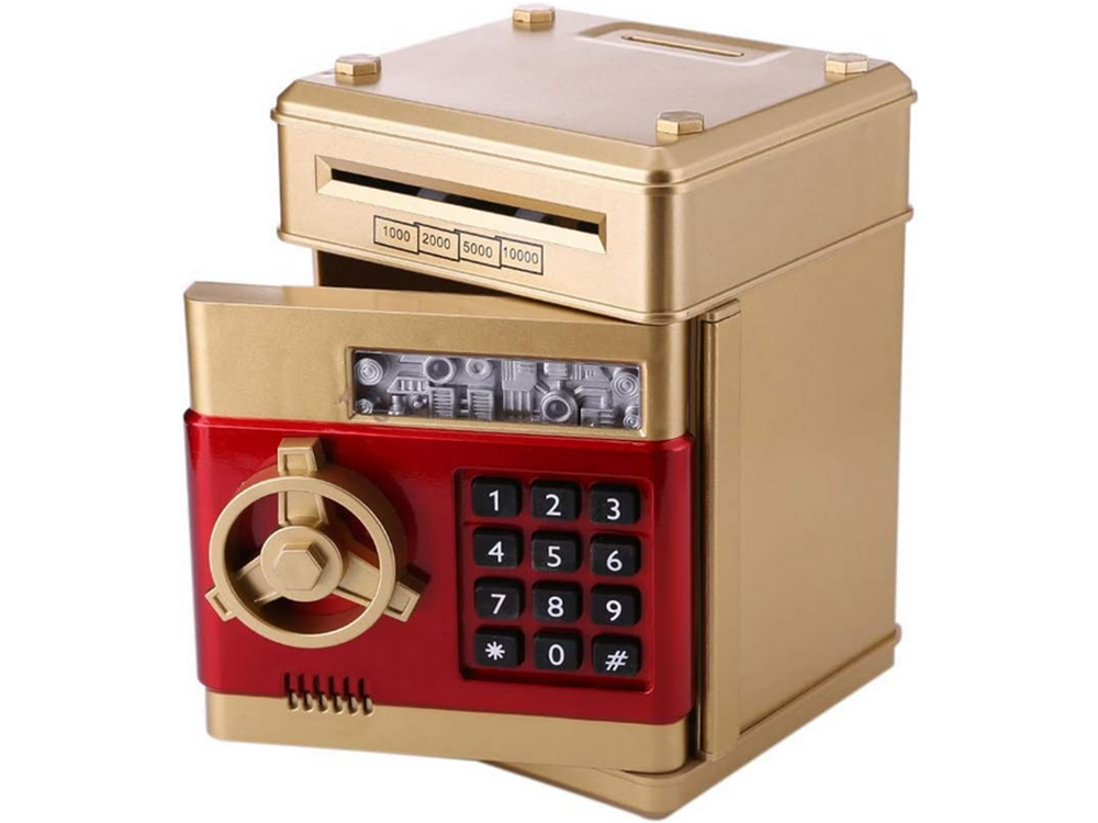 Pinigų dėžutė pagaminta klasikiniu seifo stiliumi, kuris suteikia jai unikalaus žavesio. Pinigų dėžutėje įrengtas pažangus PIN kodu paremtas užrakinimo mechanizmas, todėl prie savo santaupų galėsite prieiti tik jūs. Ši taupyklė yra malonus tradicinių taupyklių pakeitimas, nes ji ne tik puošia lentyną, bet ir yra smagi pramoga mažiesiems. Įveskite numatytąjį slaptažodį 0000 ir atidarykite dureles. ✅ Palaikykite nuspaudę * mygtuką, pradės mirksėti raudonas ir žalias šviesos diodai. ✅ Per 15 sekundžių įveskite naują 4 skaitmenų slaptažodį, paspauskite mygtuką "#", kad išsaugotumėte naują slaptažodį. Abi lemputės nustos mirksėti. ✅ Atleiskite * mygtuką ir uždarykite seifo dureles. ✅ Įdėkite baterijas - 3 x AA ✅ Padėkite banknotą prie angos, jis bus ištrauktas į vidų. ✅ Įkiškite monetą pro mažą skylutę pinigų dėžutės viršuje. ✅ Norėdami išimti pinigus iš seifo, įveskite anksčiau nustatytą 4 skaitmenų PIN kodą. Užsidegs žalias šviesos diodas. Pasukite ratuką pagal laikrodžio rodyklę ir atidarykite seifą. (Žalias šviesos diodas šviečia apie 10 sekundžių, po to seifas užsirakina). ✅ Mygtukais nuo 1 iki 9 pakeiskite melodiją. ✅ Seifo viduje yra jungiklis su garsu / be garso