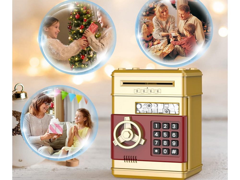 ✅ Mokosi taupyti pinigus smagiai leisdamas laiką ✅ Galimybė išimti santaupas ✅ Pinigų dėžutė su banknotais ir monetomis ✅ Maitinimo šaltinis: 3 x AA ✅ Galimybė išjungti garsą ✅ Spalva: auksinė ✅ Pinigų dėžutės plotis: 13,5 cm ✅ Aukštis: 19 cm ✅ Pinigų dėžutės gylis: 12 cm ☑️ Gamyklinis naujas interaktyvus seifas su kiaulėmis ☑️ Originali pakuotėPINIGŲ DĖŽUTĖS SEIFAS, SKIRTAS PRIEIGOS KODŲ BANKNOTAMS