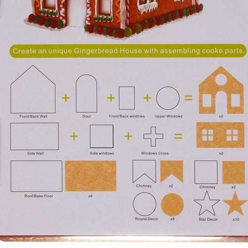 - IDEALIOS FORMOS NAMO IŠPIRPOMS – pakuotėje yra 10 dalių, kurias reikia sukurti gražus meduolių namelis. Namuose galima kepti iš meduolių ar trapios tešlos arba pagaminti iš cukraus pastos.