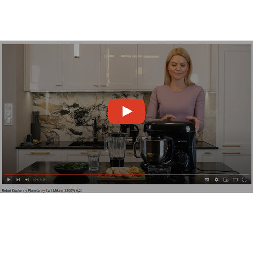- SPECIFIKACIJA - spalva: juoda; dubenėlio talpa: 6,2l; greičio lygiai: 6 pavaros + PULSE; METAL GEAR SYSTEM pavara: planetinė, metalinė; valdymas: mechaninė rankenėlė su raudonu LED foniniu apšvietimu; užraktas, kad būtų išvengta atsitiktinio atidarymo; instrukcijos: Taip, lenkų kalba; galia: 2200 W; dažnis: 50-60 Hz; Medžiaga: ABS, 430 nerūdijantis plienas, aliuminio lydinys su teflonine danga, silikonas, PP, AS, PC su chromu, PS, PA, SUS304, EVA, stiklas