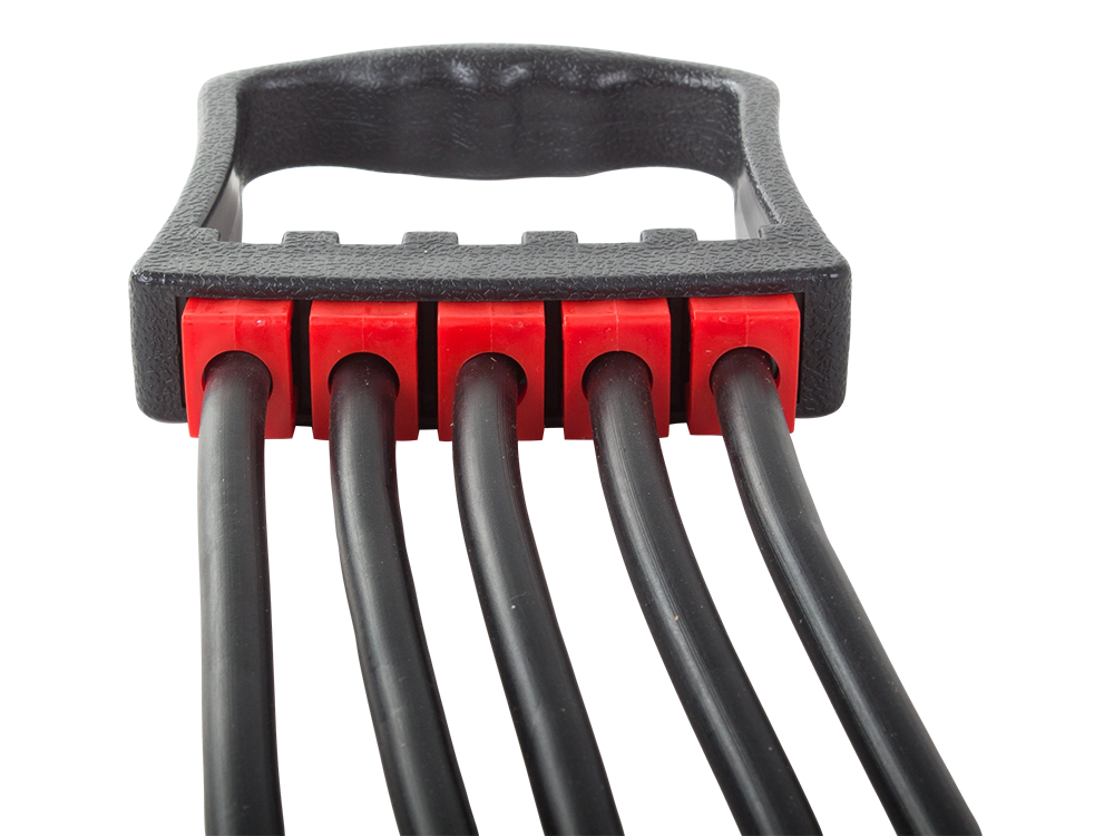 - 5 didelio pasipriešinimo elastines juostas, leidžiančias pritaikyti treniruotes pagal jūsų poreikius.