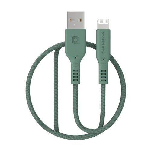 Lankstus USB A - Lightning kabelis, skirtas greitam įkrovimui ir duomenų perdavimui, žalios spalvos, 1.1m.