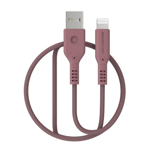 Lankstus USB A - Lightning kabelis, skirtas greitam įkrovimui ir duomenų perdavimui, rausvos spalvos, 1.1m.