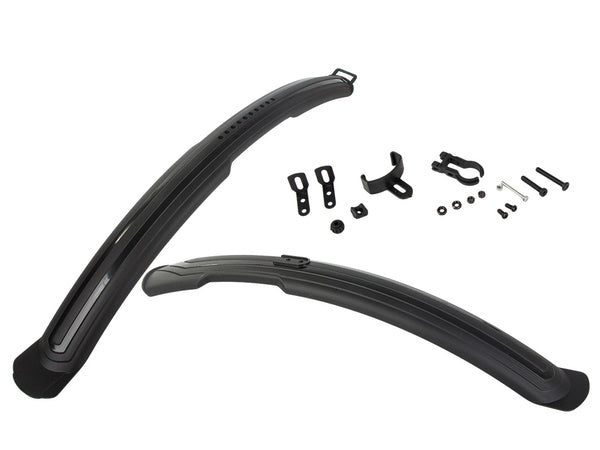 Priekiniai ir galiniai dviračio purvasaugiai yra idealus sprendimas tiems, kurie dažnai važinėja įvairiomis oro sąlygomis. Jų dėka lengvai išvengsite nešvarumų, atsirandančių važiuojant šlapiu paviršiumi, brūzgynais ar purvinais keliais. Rinkinį sudaro dvi dalys - vienas purvasargis priekyje, kitas gale, todėl visiškai apsaugo ir dviratininką, ir dviratį. Šie purvasargiai puikiai tinka tiek miesto, tiek bekelės keliams. Jie leidžia išlaikyti dviratį ir drabužius švarius, kad ir kokios sudėtingos būtų sąlygos kelyje. Tai būtina įranga kiekvienam dviratininkui, vertinančiam komfortą ir apsaugą nuo nepalankių oro sąlygų. ✅ Produkto kodas: 14559 ✅ Pagaminta iš aukštos kokybės medžiagų ✅ Didelio patvarumo ✅ Tinka dviračiams, kurių ratų dydis: 24-28" ✅ Priekiniai matmenys: ilgis 50 cm ✅ Galiniai matmenys: ilgis 65 cm ✅ Spalva: juoda ☑️ Gamykliniai nauji dviračio purvasaugiai 2 vnt. ☑️ Montavimo rinkinys