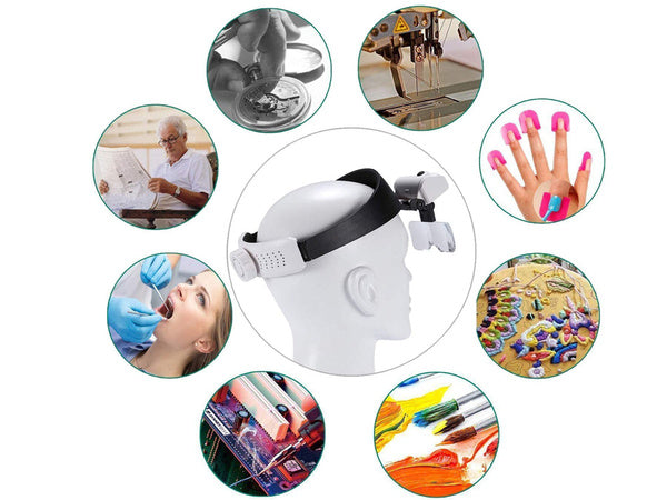 - Patogus dizainas: Universalus dydis su reguliuojamu dirželiu leidžia patogiai dirbti, net jei dėvite korekcinius akinius.