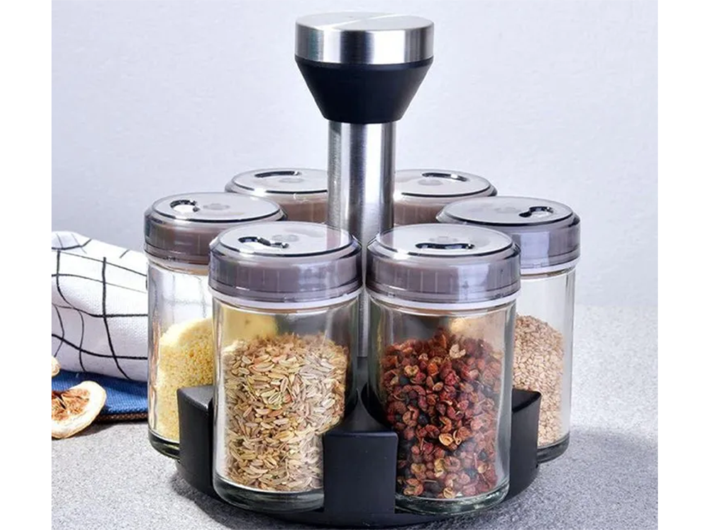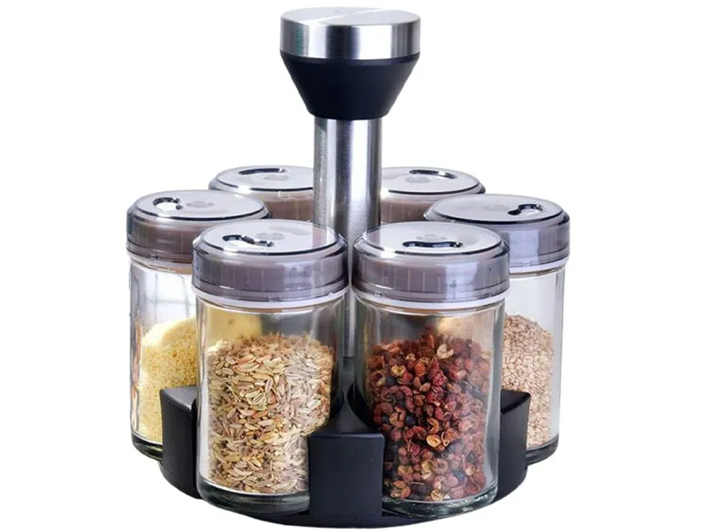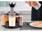 Prieskonių organizatorius su sukamo stikliniais indeliais (6 vnt.) yra idealus sprendimas, norint palaikyti tvarką virtuvėje. Šis modernus ir elegantiškas prietaisas suteikia lengvą ir greitą prieigą prie jūsų mėgstamų prieskonių, todėl virti taps dar maloniau.