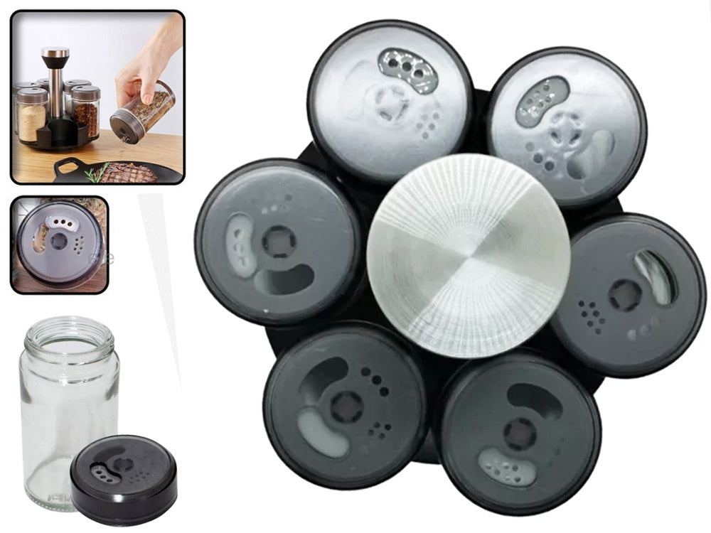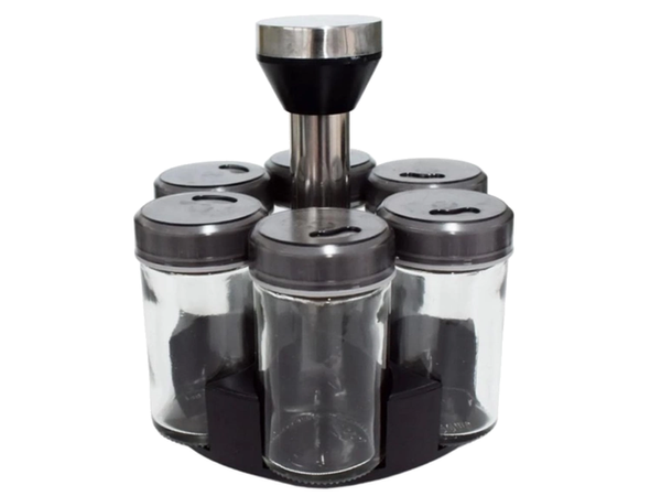 Kiekvienas indelis pagamintas iš aukštos kokybės stiklo, kuris užtikrina, kad prieskoniai ilgiau išliks švieži ir aromatingi. Sukamasis stovas suteikia galimybę pasiekti bet kurį indelį be vargo, tad gaminant maistą visada rasite reikiamą prieskonį.