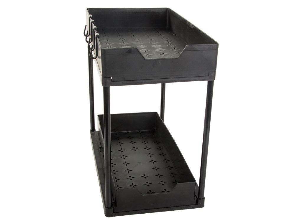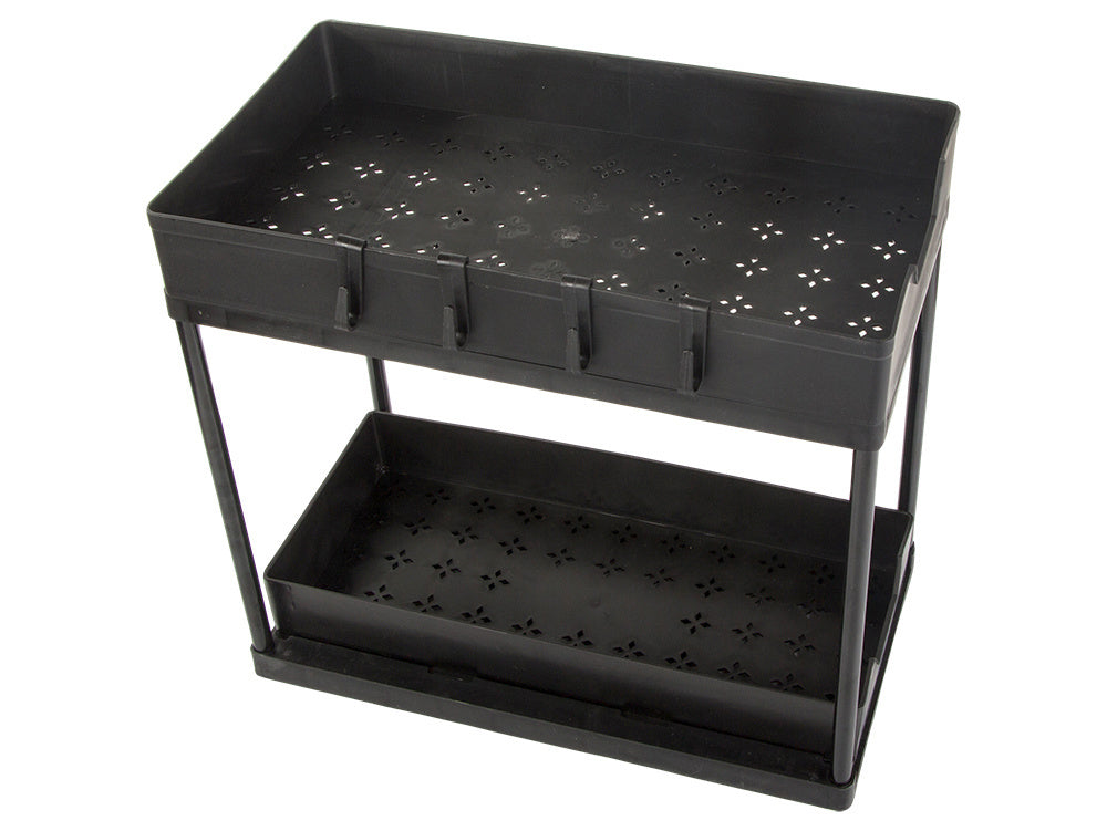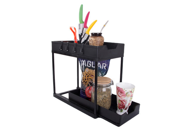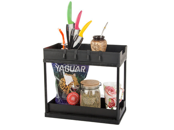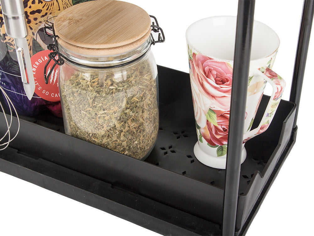 Jis puikiai tiks kaip lentynėlė prieskoniams virtuvėje, kosmetikai vonios kambaryje, taip pat kitiems biuro ir mokyklos reikmenims. Universali lentyna, tinkanti įvairiam naudojimui. ✅ Produkto kodas: 27353_CZ ✅ Medžiaga: plastikas ✅ Dvi ištraukiamos lentynos ✅ Kabliukai x 4 vnt. ✅ Patvarus dizainas ✅ Matmenys: 36 cm x 40 cm x 22 cm ✅ Spalva: juoda ☑️ Gamyklinis naujas virtuvės organizatorius ☑️ Originali pakuotėPRIESKONIŲ STOVAS IŠTRAUKIAMA LENTYNA VIRTUVĖS ORGANIZATORIUS STALVIRŠIO LENTYNA STOVI