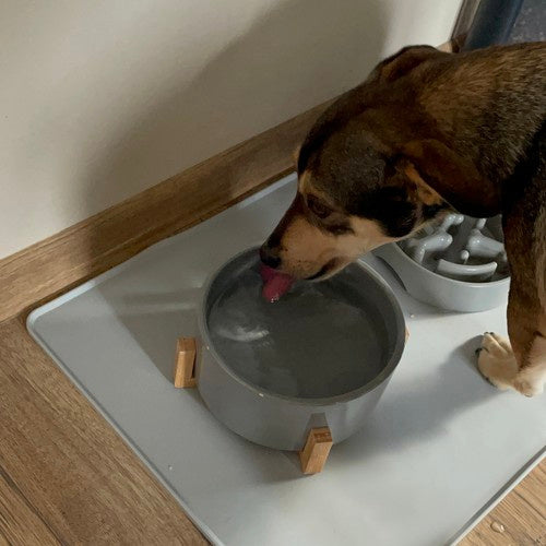 Praktiškas sprendimas, kuris apsaugo grindis ir išlaiko dubenėlius valgio metu.