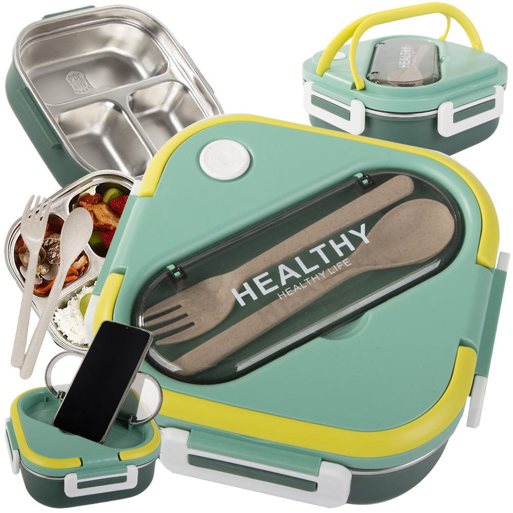 Praktiška pietų dėžutė su keliais skyriais, stalo įrankiais ir dangteliu. Talpa – 1000 ml. Tinka naudoti mikrobangų krosnelėje. Idealus pasirinkimas mokyklai, darbui ar išvykoms.
